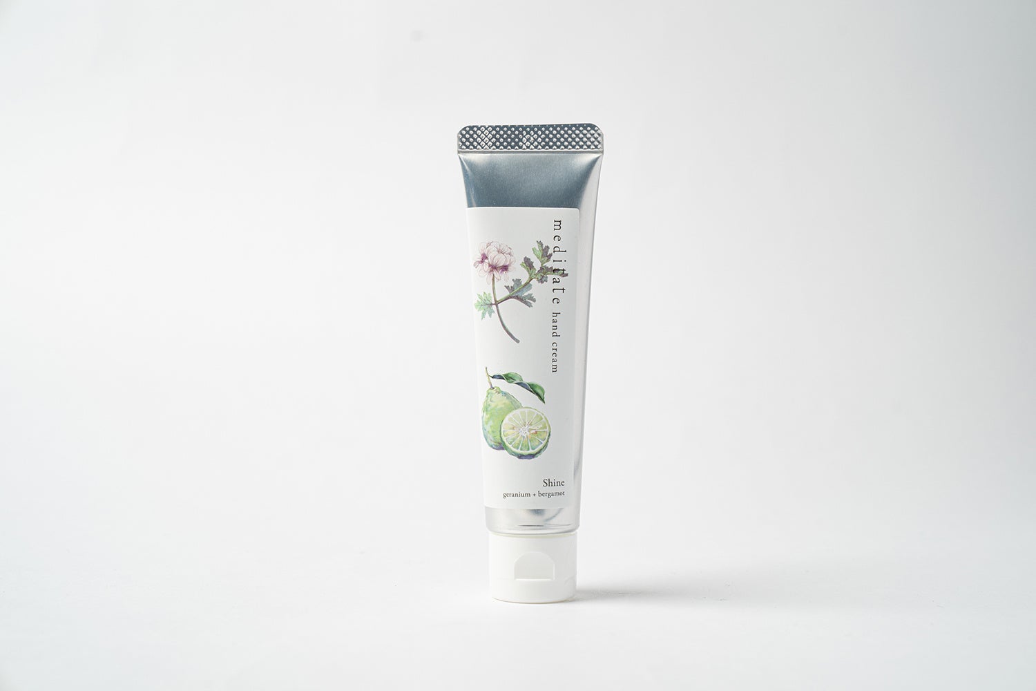 ゼラニウムとベルガモットというハーブを組み合わせたハンドクリームです。心の揺らぎを穏やかにして、晴々とした気持ちを作り出す「輝き」という意味の香りです。天然成分のマカダミアナッツ油とシアバターを配合し、乾燥からしっかりと手を保護します。