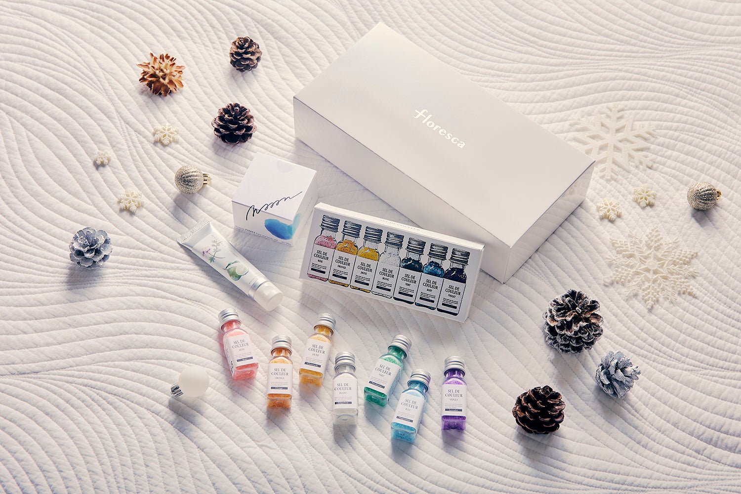 透きとおる肌体験を提供するスキンケアブランド【floresca (フロレスカ)】の人気商品、高純度のNMNをオールインワンで体感できる「フロレスカNMNフェイス&ボディヴェイル」、ゼラニウムとベルガモットのハーブを組み合わせた「meditate ハンドクリーム シャイン」、フランスのブルターニュ産ソルトと各種ハーブを配合した「セルデ・クルールバスソルト」の3つをセットにしたウインターギフトを、12⽉12⽇ (⽕) より公式オンラインストアにて発売開始いたします。