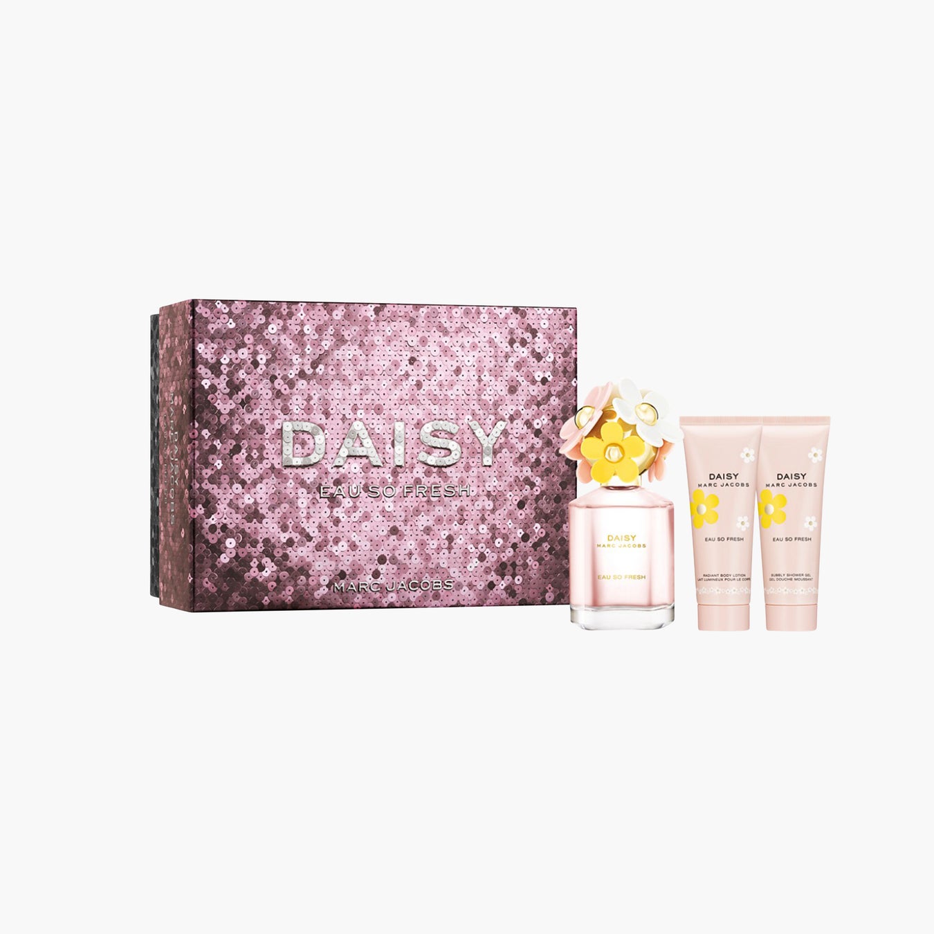 キュートなピンクのボックス「デイジー オー ソー フレッシュ ギフトセット」は、「デイジー オー ソー フレッシュ オードトワレ」75mlと、と使いやすい75ml容量のボディローション、シャワージェルの3点セットコフレ。オードトワレ単体でも、シャワージェルとボディローションを重ねて使用しても、たくさんのデイジー オー ソー フレッシュ」の香りを楽しめるセットとなっています。
