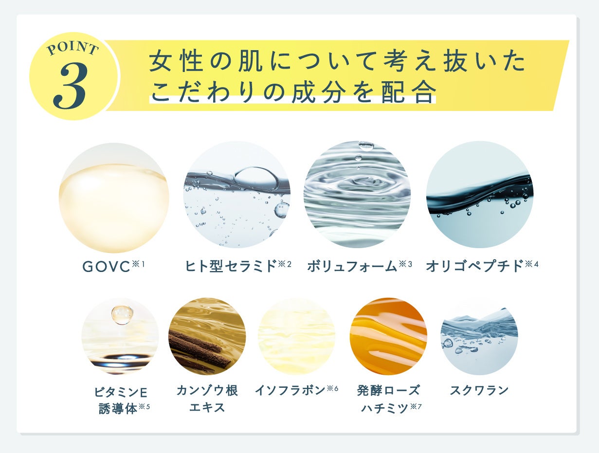 POINT3 女性の肌について考え抜いた、こだわりの成分を配合