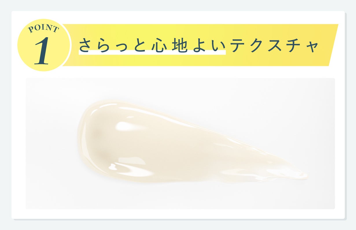 幅広い年齢層、あらゆる肌タイプのお客様にご満足いただける製品にするため、テクスチャには最大限こだわりました。妥協しなかった甲斐あって、セラムを塗ってすぐにブラを着用してもベタつかない“さらっとした”テクスチャを実現。