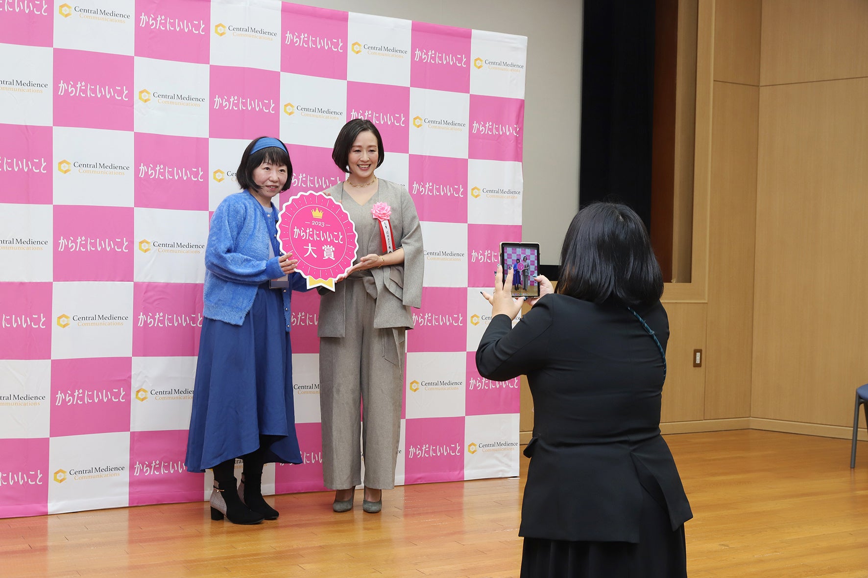 授賞式当日は、23名のからだにいいことアンバサダーの方にも会場で参加していただき一緒にアワードを盛り上げていただきました。また、第2部として、審査員の前田あきこさん(管理栄養士・健康運動指導士)にご登壇いただき、からだにいいこと奥谷プロデューサーと対談、今回のアワードについて総括いたしました。