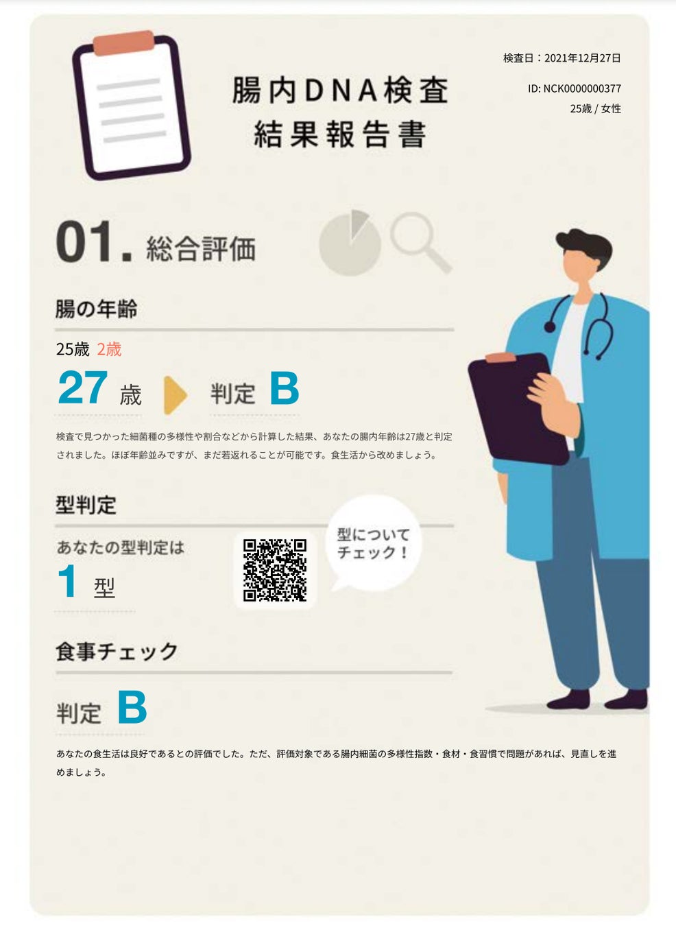 腸内年齢、細菌の種類数、多様性、乳酸菌、ビフィズス菌、エクオール産生菌、デブ菌ヤセ菌の割合などが明らかになります。これにより様々なケアに活用します。株式会社レイクビー提供