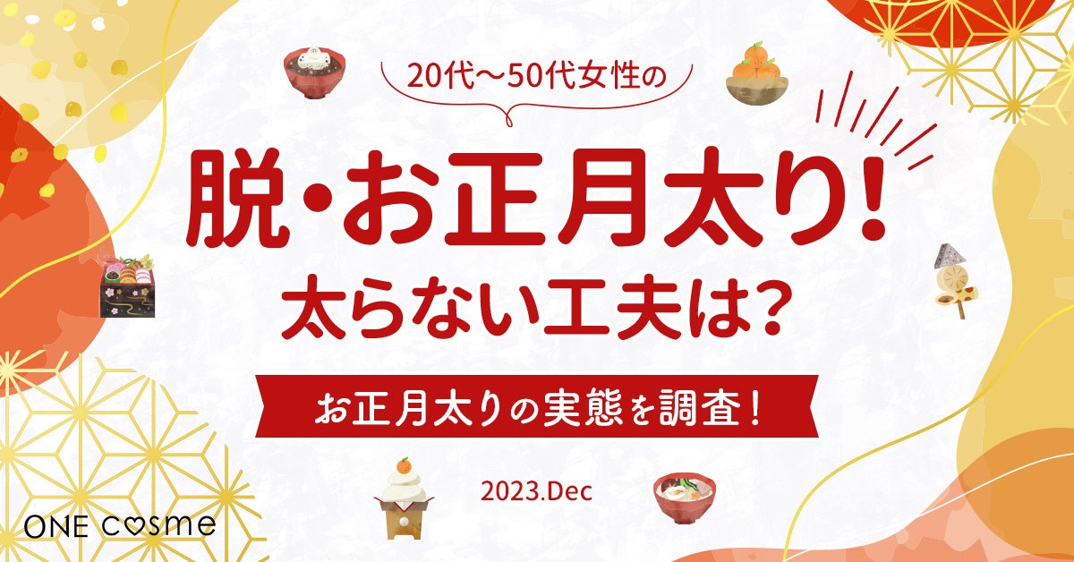 美容感度が高い20代~50代のONEcosmeユーザーに実施した「お正月に太らない工夫についての調査」では、7割以上の女性がお正月は普段より体型キープが難しいと回答。実践している太らないための工夫は”食事を意識する” ”体を動かす”などでした。