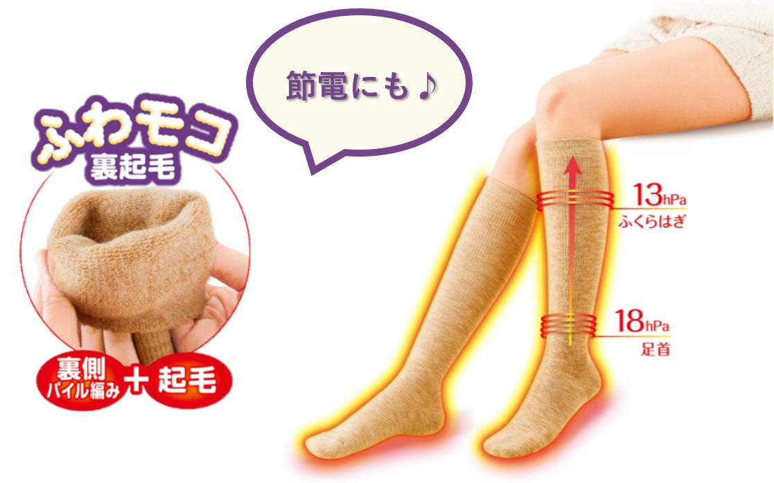 おうち時間では、スリムウォーク史上最高の保温性※「スリムウォーク 冷え知らず着圧ソックス」を履いて、節電も!