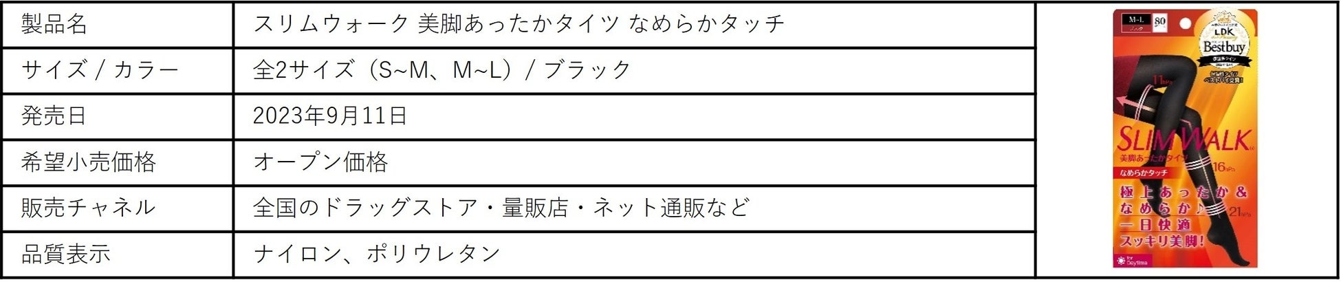外出先では、「スリムウォーク 美脚あったかタイツ なめらかタッチ」で、あったか×着膨れせず引き締め美脚♪