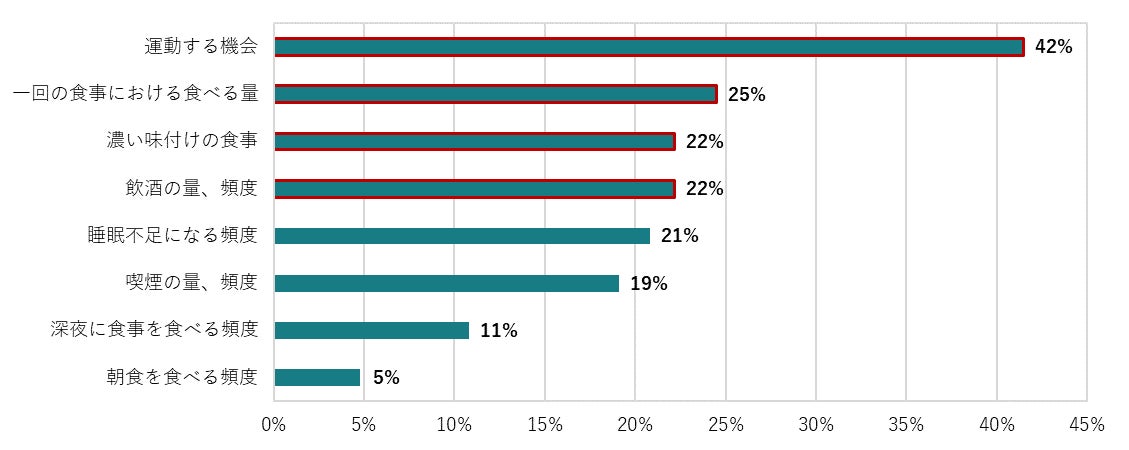 また、生活習慣を改善しようと思っていないと回答した人にその理由を聞いたところ、1位は「今後の生活に支障はないと思うから(52.8%)」、次いで「改善方法がわからないから(22.6%)」「対策をしても効果が見えづらいから(21.7%)」でした。