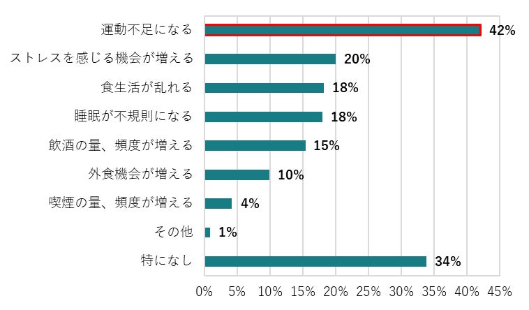 *「運動する機会」に関しては、「やや減る・とても減る」の合計値。それ以外の項目に関しては、「やや増える・とても増える」の合計値。