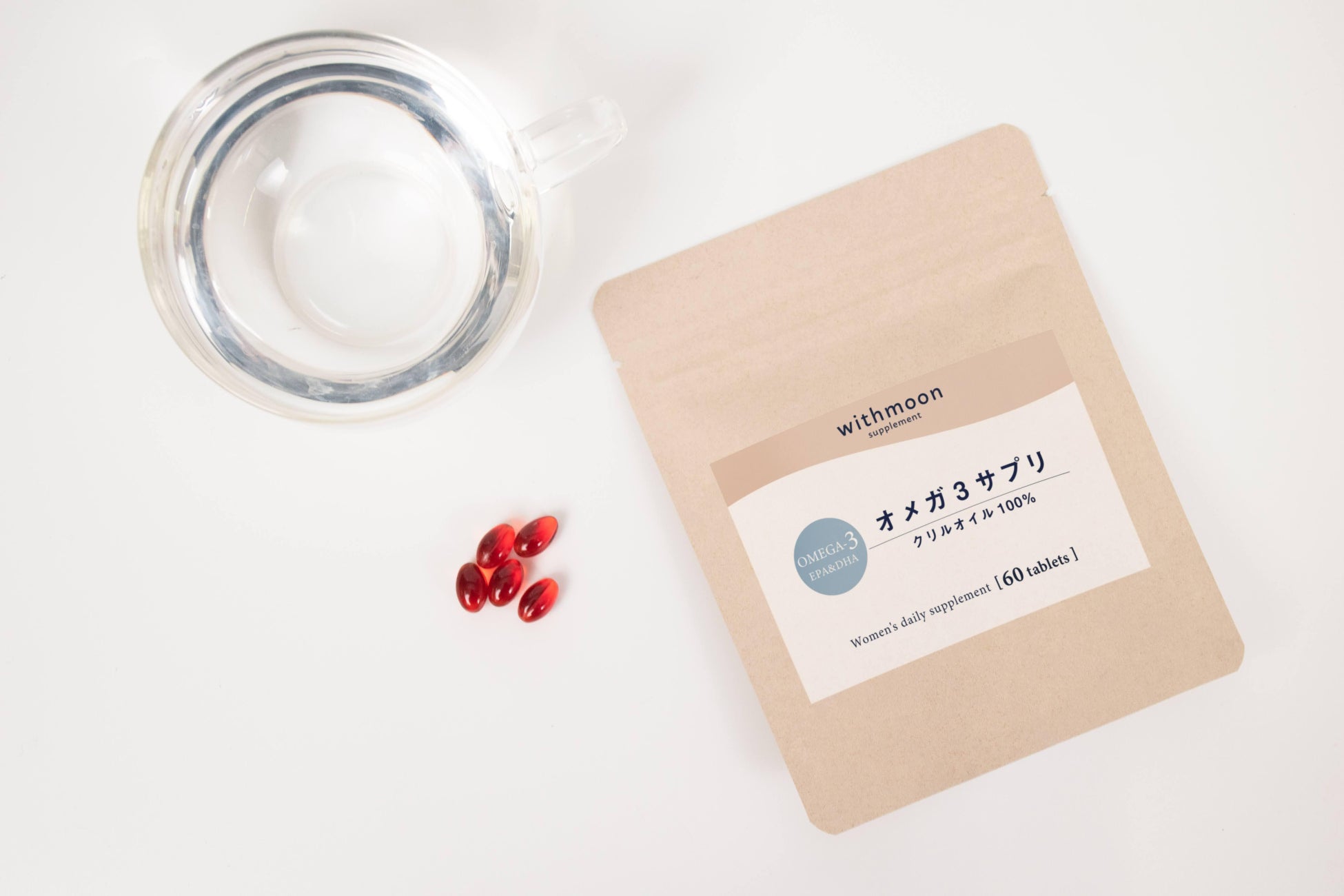こだわりの原料にはDHA、EPAのオメガ3脂肪酸やアスタキサンチンなどが豊富に含まれている「クリルオイル」を採用し、飲んだ後の魚臭さがなく飲みやすいと好評です。女性の健康にとって積極的に取り入れたい栄養素の一つである「オメガ3脂肪酸」を、ぜひwithmoonのサプリメントで生活に取り入れてみてください。