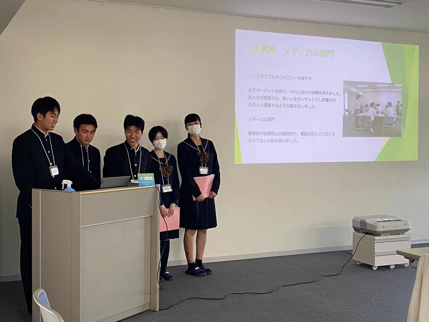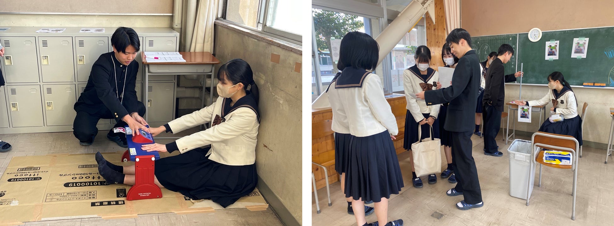 岡山南高校では、岡山県の企業と連携し岡山の魅力を商品化、県内イベントを盛り上げる取り組みを行っています。当社も2020年から一緒に取り組んでおり、今年で4年目になります。2023年は、当社の研究開発施設を利⽤したサポーターの機能を検証する実験や、運動器年齢を測定できるシステムを使⽤し、イベントの企画や運営等を進めていきました。授業の中で、現代の子どもたちの体力低下問題や健康問題、栄養について考える時間を設けたことで、健康に対する意識も高まりました。今回の取り組みを通して、⾼校⽣の視点、企業の視点の気付きを元に意⾒交換ができ、両者にとって新しい発⾒があり、考えを深めることができました。