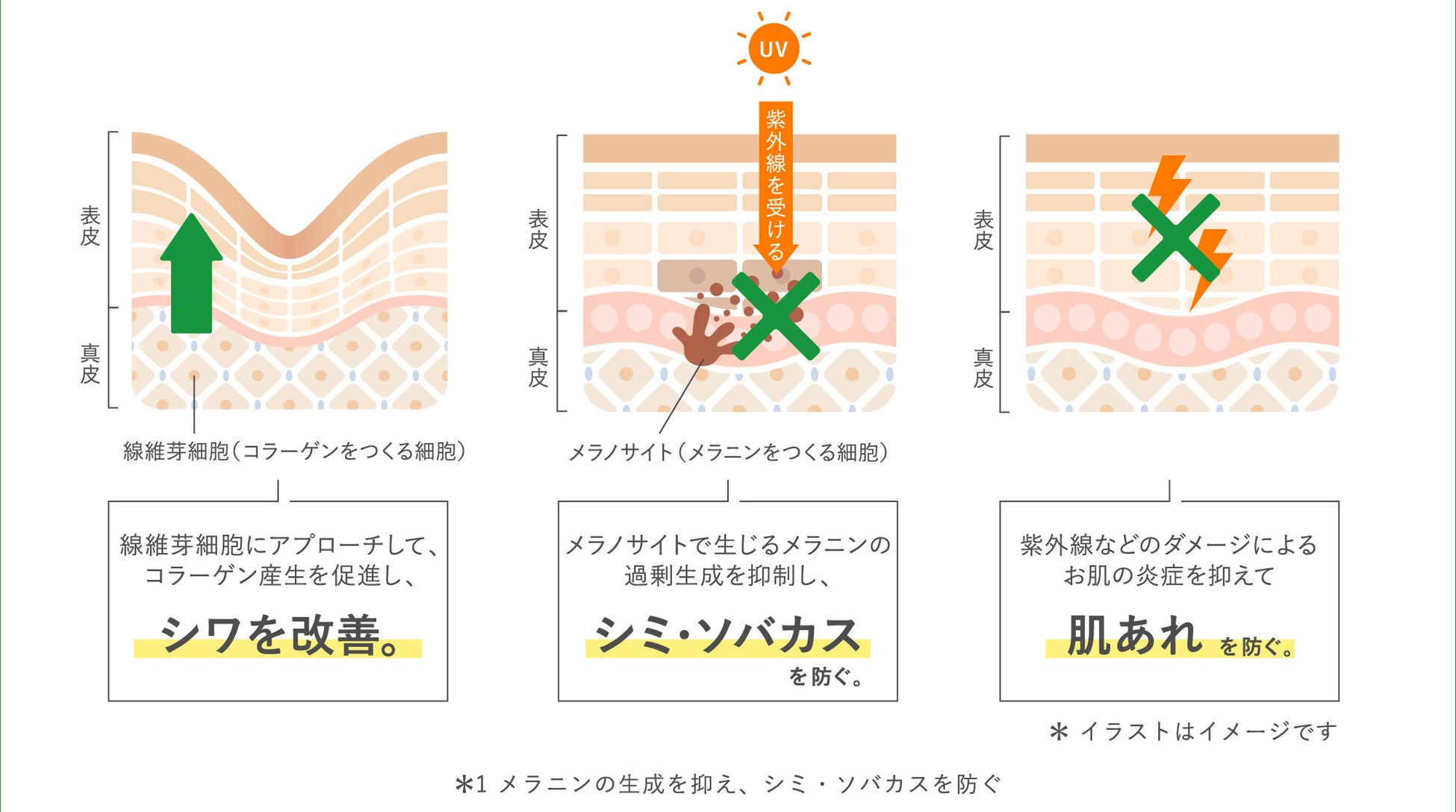*1 メラニンの生成を抑え、シミ・ソバカスを防ぐ