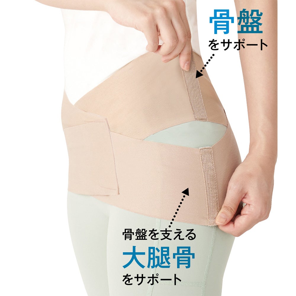 2本のベルトが骨盤の両サイドを上下に分けて幅広くサポート。