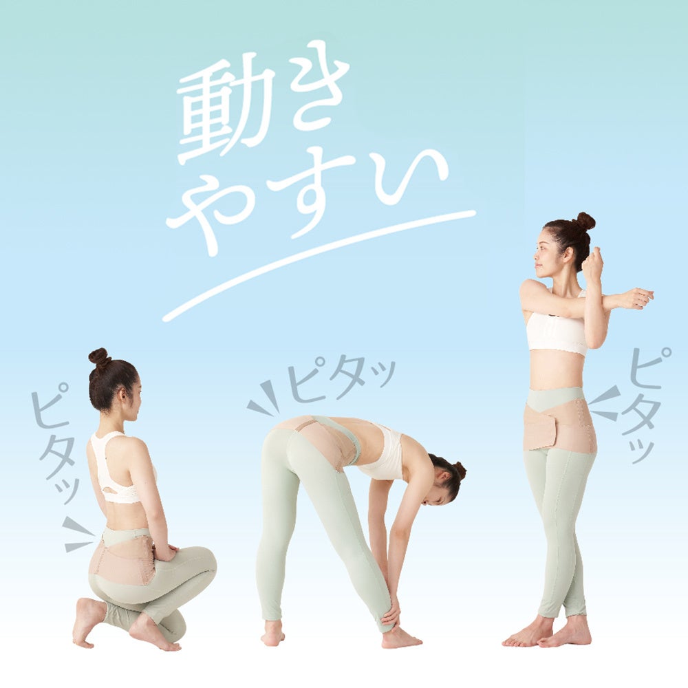 肌と一体化したように骨盤を自然にサポート。かがんでも、体をひねっても圧迫感が少なくズレにくい。