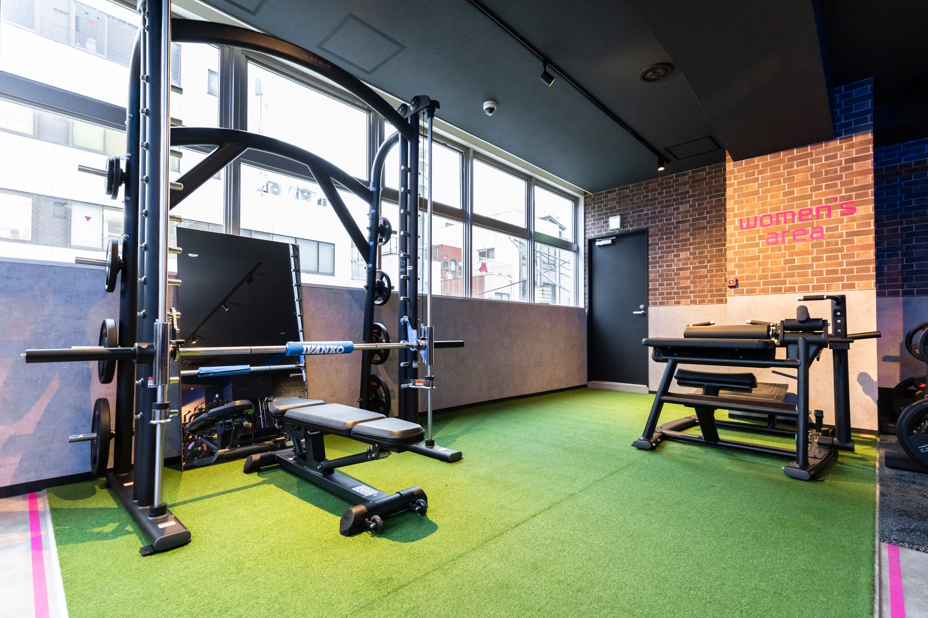 「男性ばかりでフリーウエイトは利用しづらかった」という女性のニーズに対応するため、女性専用トレーニングエリアを設けました。同エリアには女性に人気のヒップグルートやスミスマシンなど女性向けのトレーニング機器を揃えているため、集中できる環境だけでなく、効果的なトレーニングが可能となります。