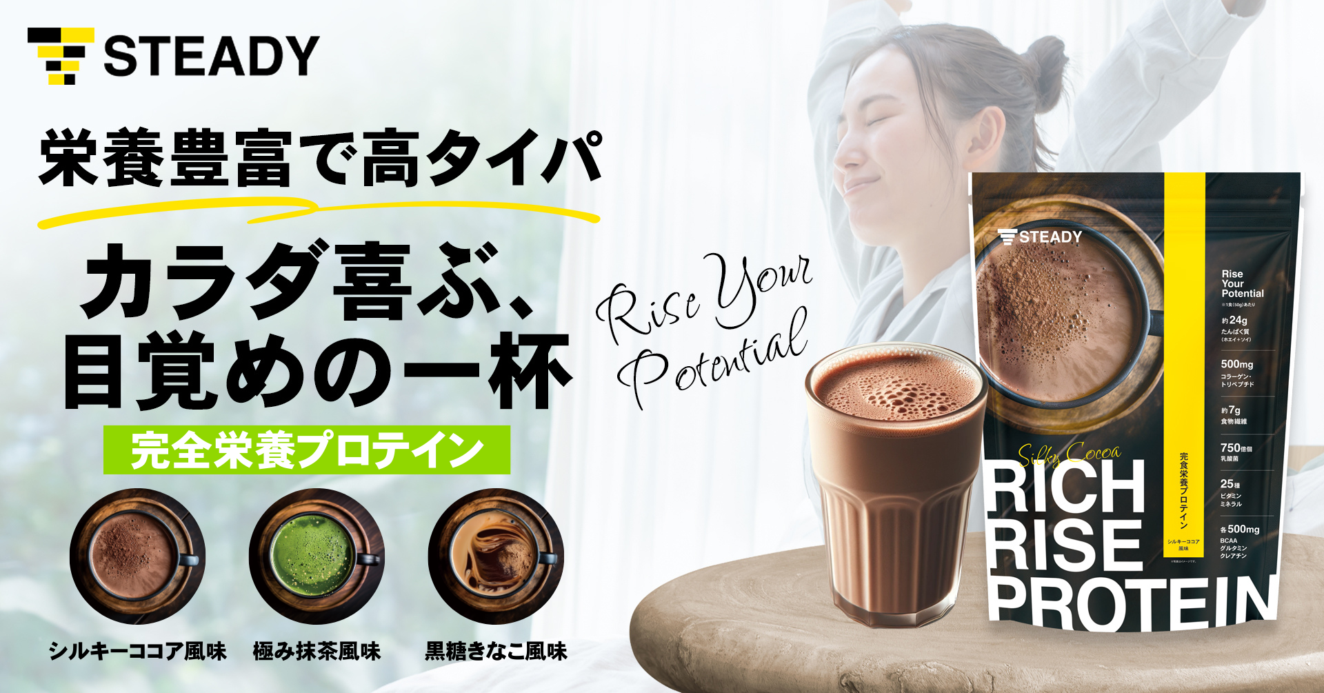 RICH RISE PROTEIN – 豊富な栄養でカラダを満たし、最高の一日に –