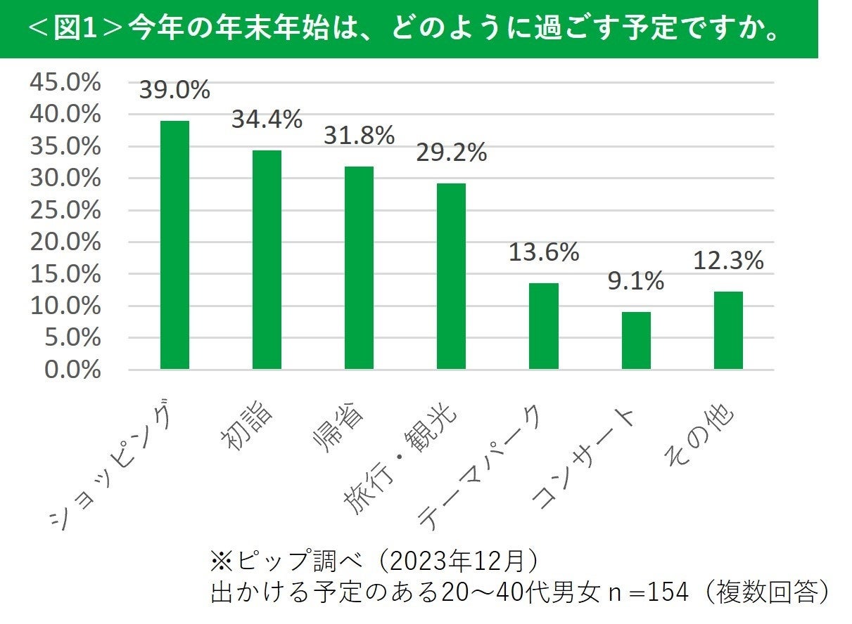 ✓ 年末年始のお出かけ先として「ショッピング(39.0%)」「帰省(31.8%)」「旅行(29.2%)」等荷物が