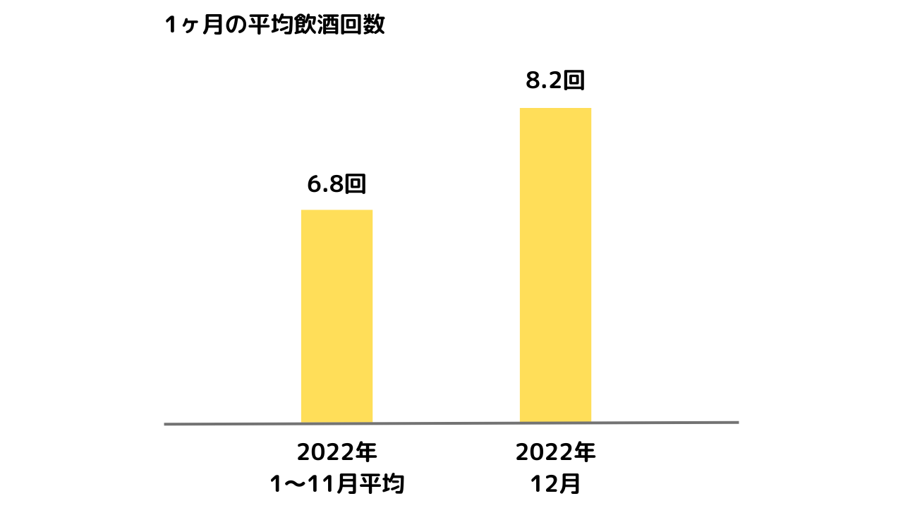 12月は、忘年会や送別会など外食の機会が多い他、クリスマスや大晦日などのイベントもあるため、飲酒の機会が増えていることが伺えます。