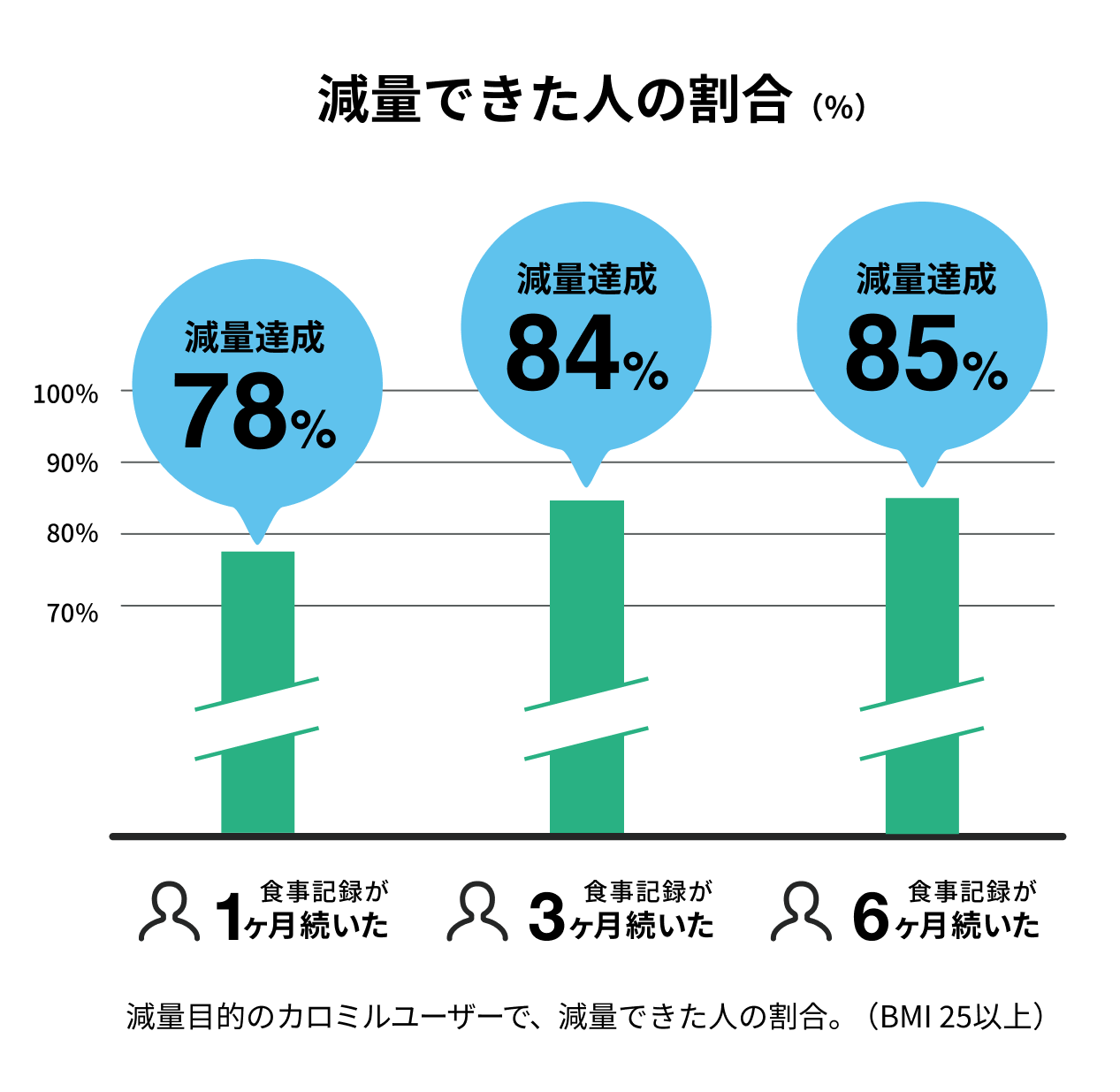 健康管理アプリ「カロミル」、BMI25以上のユーザーの減量率が80%以上に