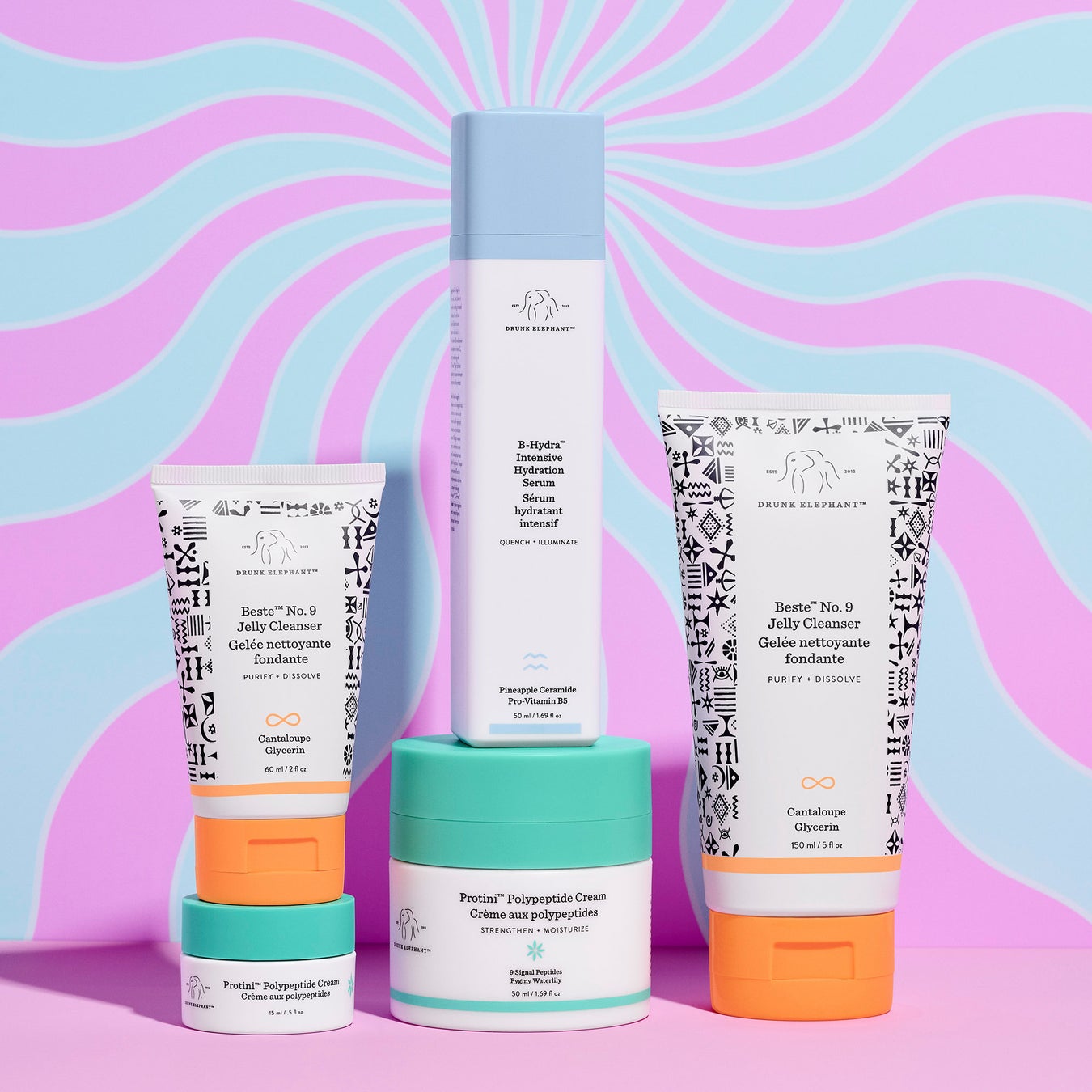 肌がよろこぶ成分選びにこだわり、スキンケア・ヘア・ボディ製品を展開する、米国発のドランク エレファント。創設者であるティファニー・マスターソンの経験に基づき、肌に刺激を与える可能性のある6種の原料は全製品に配合せず、私たちの製品を使用することで肌がうるおいバランスの整ったハッピースキンに導かれると信じています。