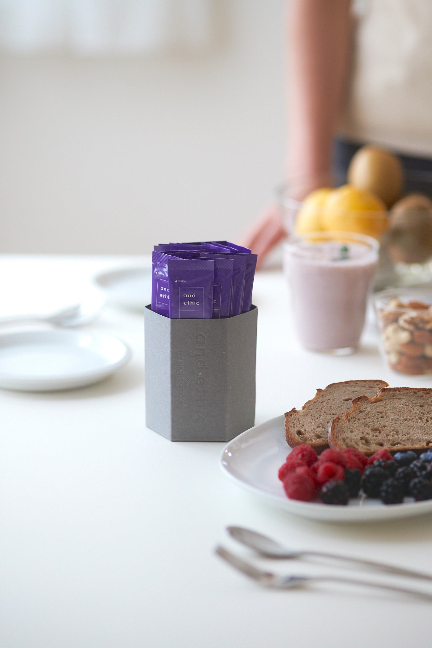 「きれいになるのも、健康になるのも、一朝一夕にはいかないもの。一番大事なのは継続すること」という考えをもとに、手軽に摂取して習慣化できるよう1.5gずつの個包装に分けました。また環境負荷を抑えるこだわりとして、サスティナブルな方法で生産された原料と、商品パッケージ等にサトウキビ由来のプラスチックや植物由来のインク、環境に配慮した再生紙、環境対応紙を使用しています。
