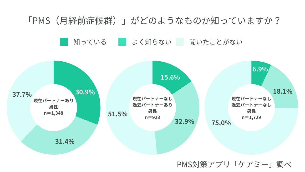 生理のある女性の約70~80%が生理前に何らかの症状(PMS)があるとされています。そのようななかで、男性はPMSについてどのくらい認知しているのか。パートナーの有無によるPMSの認知度を調査しました。