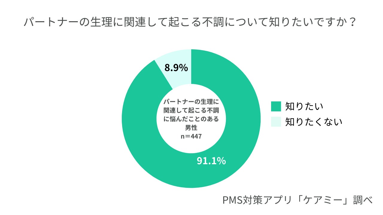 ・女性パートナーのPMSに悩む男性の91.1%がPMSを理解したいと考えている