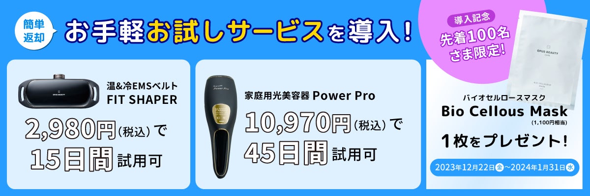 お手頃な価格でオーパスビューティの「フィットシェイパー」や「パワープロ」をご利用いただけます。お試し期間を通じて、製品のパフォーマンスと利便性を実感することができます。