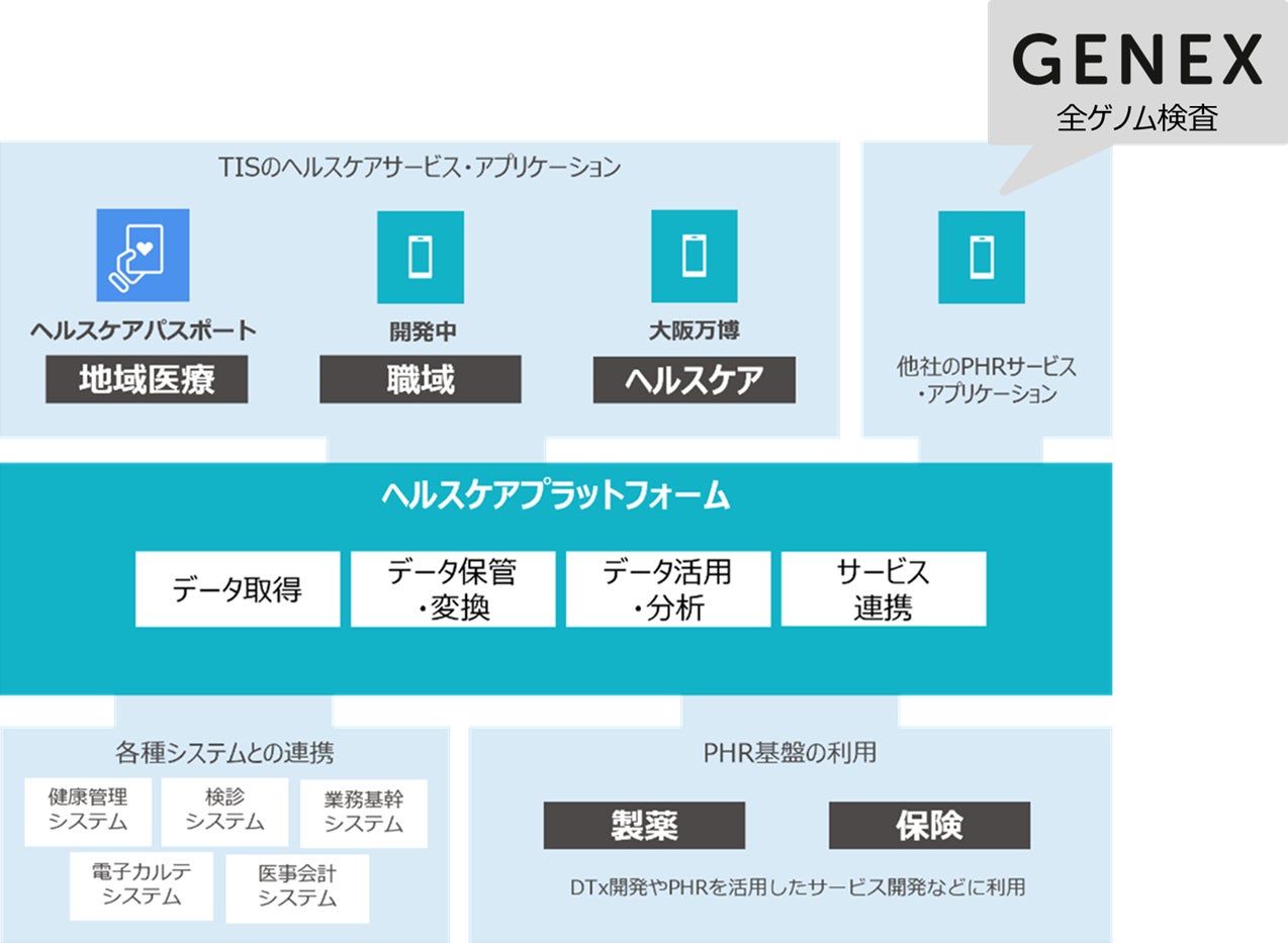また、TISのヘルスケアプラットフォームやヘルスケアパスポートなどのアセットを活用したジーネックスの全ゲノム検査のセキュリティ向上やコスト削減、製薬を中心としたデータ活用ニーズに応えることで、人々の健康づくりへと活用される共創環境としてのヘルスケアプラットフォームの拡大を目指していきます。