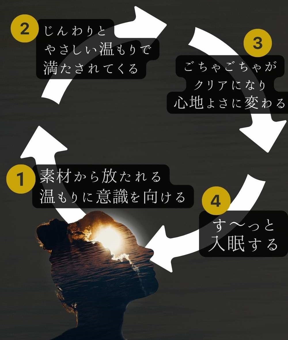 FLYYPODマインドスリープマスクは、ほのかな遠赤外線を放出する革新的なテクノロジー素材を採用しており、着けて、ほのかな温かさに意識を向けつづけていくうちに、ごちゃごちゃから心地よさに変わり、スッと穏やかな睡眠へ導くというマインドフルネスの要素を取り入れたスリープマスクです。