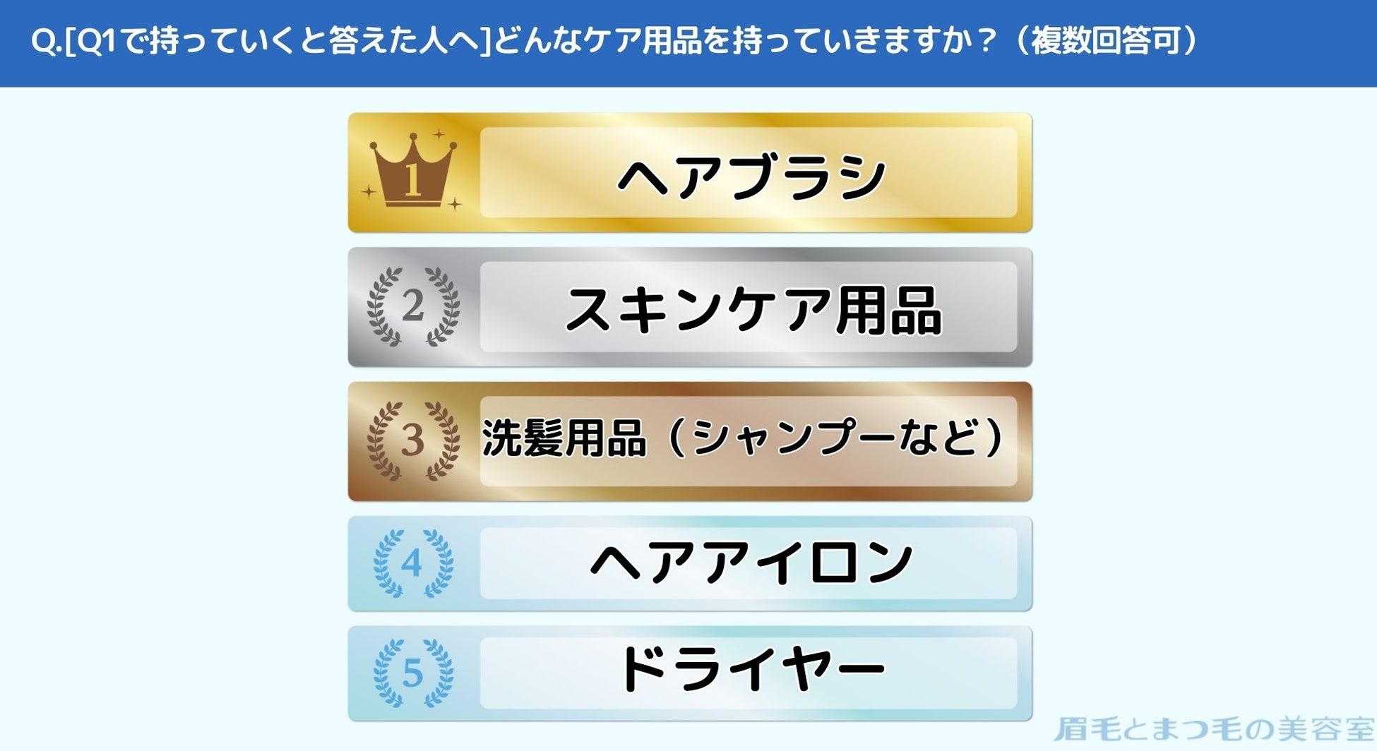 【2】旅行先に持っていく美容ケア用品は「ヘアブラシ」がトップ!スキンケア用品も根強い人気あり