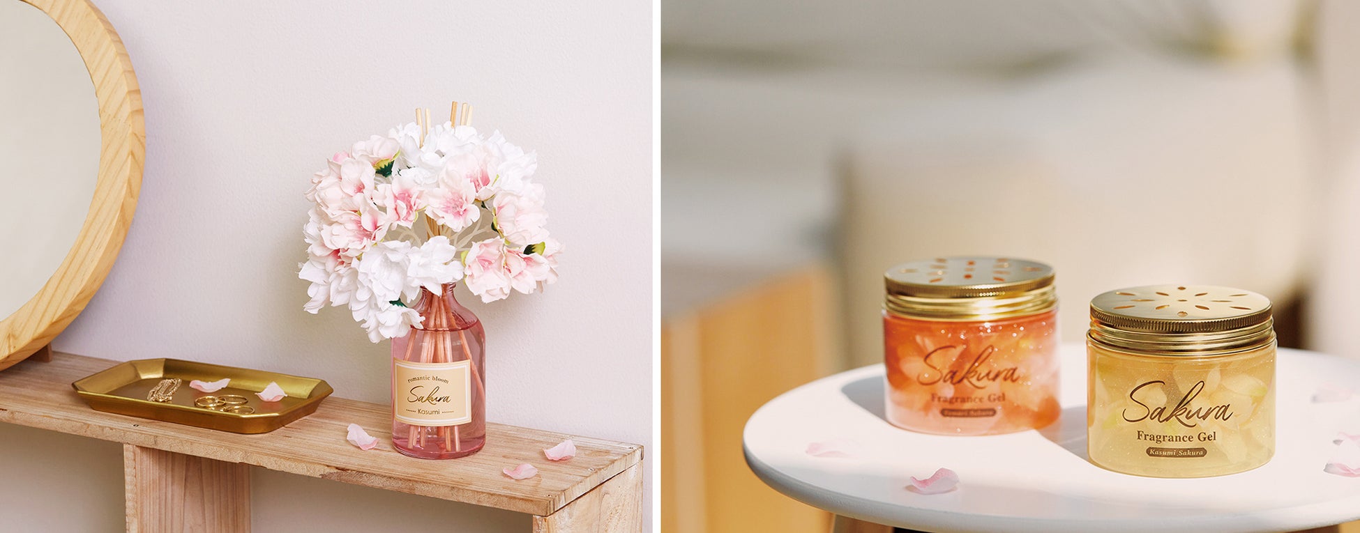 カスミザクラとテマリザクラをイメージした2種の香りで、おうちに春をお届けします。