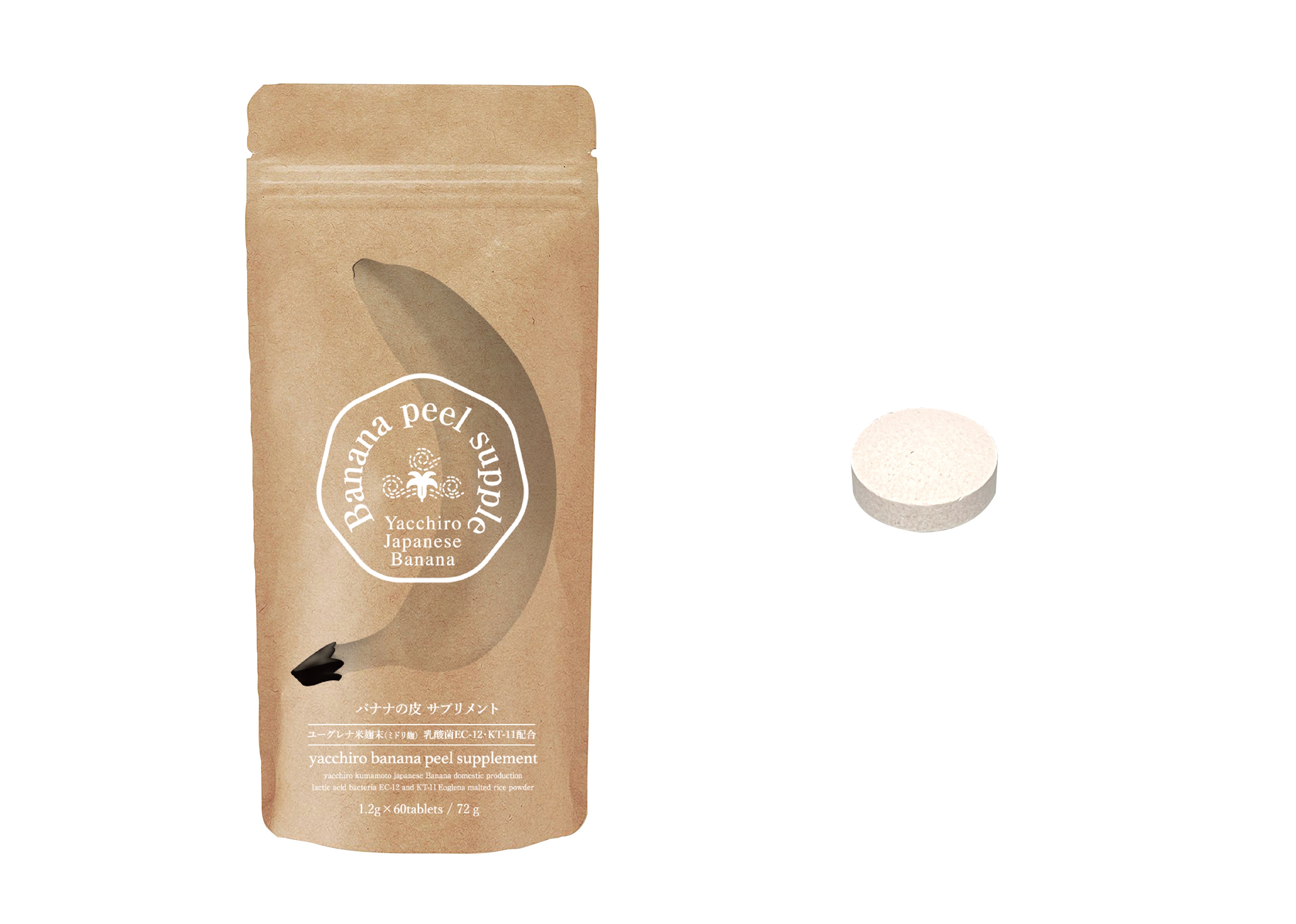 「やっちろバナナ」は、環境を考慮し農薬・化学肥料を一切使用しないで栽培しているほか、バナナのパッケージにはプラスチックではなくグラシン紙を採用するなど、持続可能な取組みを積極的に取り入れています。今回、ユーグレナ社が掲げるフィロソフィー「Sustainability First」に共感した私たちは、「やっちろバナナ」の皮にユーグレナ社が特許を持つ自然素材ミドリ麹を配合し、「バナナの皮 サプリメント」作り上げました。