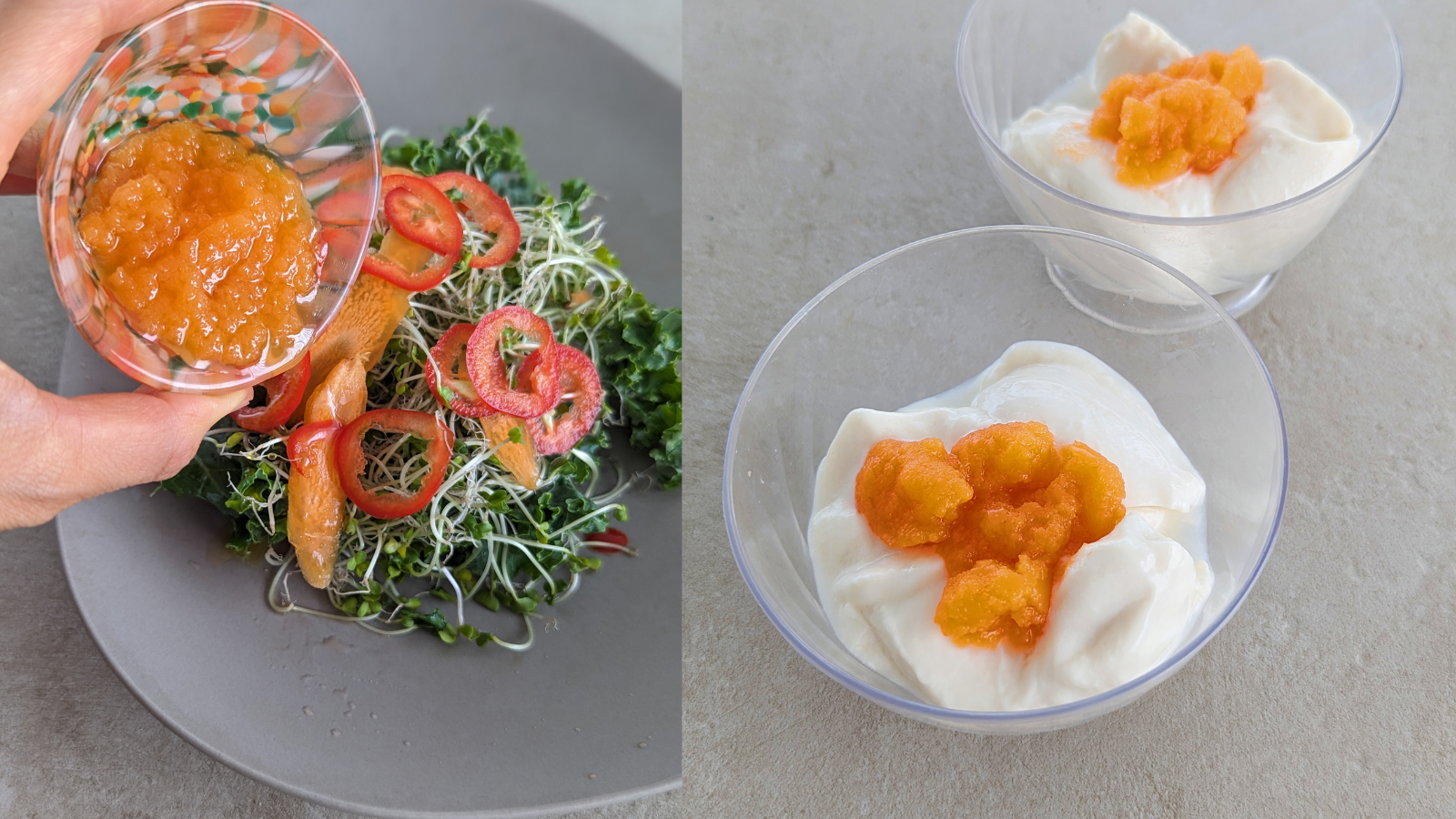 3. 手軽で美味しい:ジュレ状のゼリーとして、ノズル式のパウチに入っています。常温で持ち運べます。加工日から半年間保存できることも常備品として嬉しい。さらに、フルーティーでとっても甘く、そのままでも、お料理の隠し味として、ドレッシングに混ぜたり。毎日の健康習慣に取り入れやすいです。