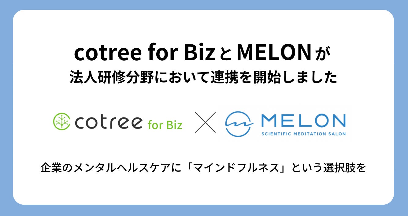 この連携により、cotreeが提供する法人・団体向けメンタルヘルスケアサービス「cotree for Biz」のお客様に、MELONのマインドフルネス研修をご紹介頂けるようになりました。