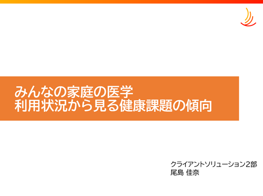 第2部は、当社のヘルスケアサービス「みんなの家庭の医学」の利用状況から見る健康課題の傾向について、ご報告をいたしました。
