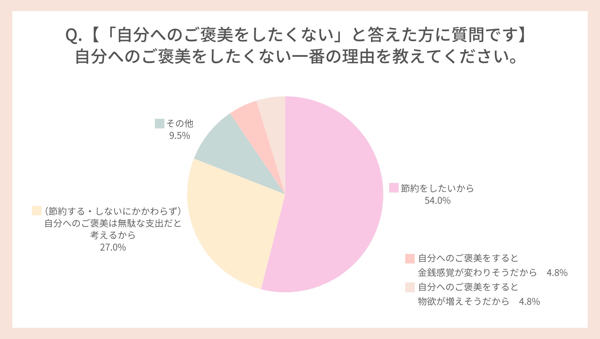 次に多かった回答は「(節約する・しないにかかわらず)自分へのご褒美は無駄な支出だと考えるから」27.0%でした。