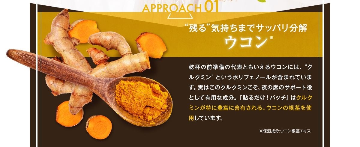 海外で”貼るサプリメント”と呼ばれ主流になっているシート型サプリメントに着目し、日本で最初に発売を開始した【貼るウコン】です。