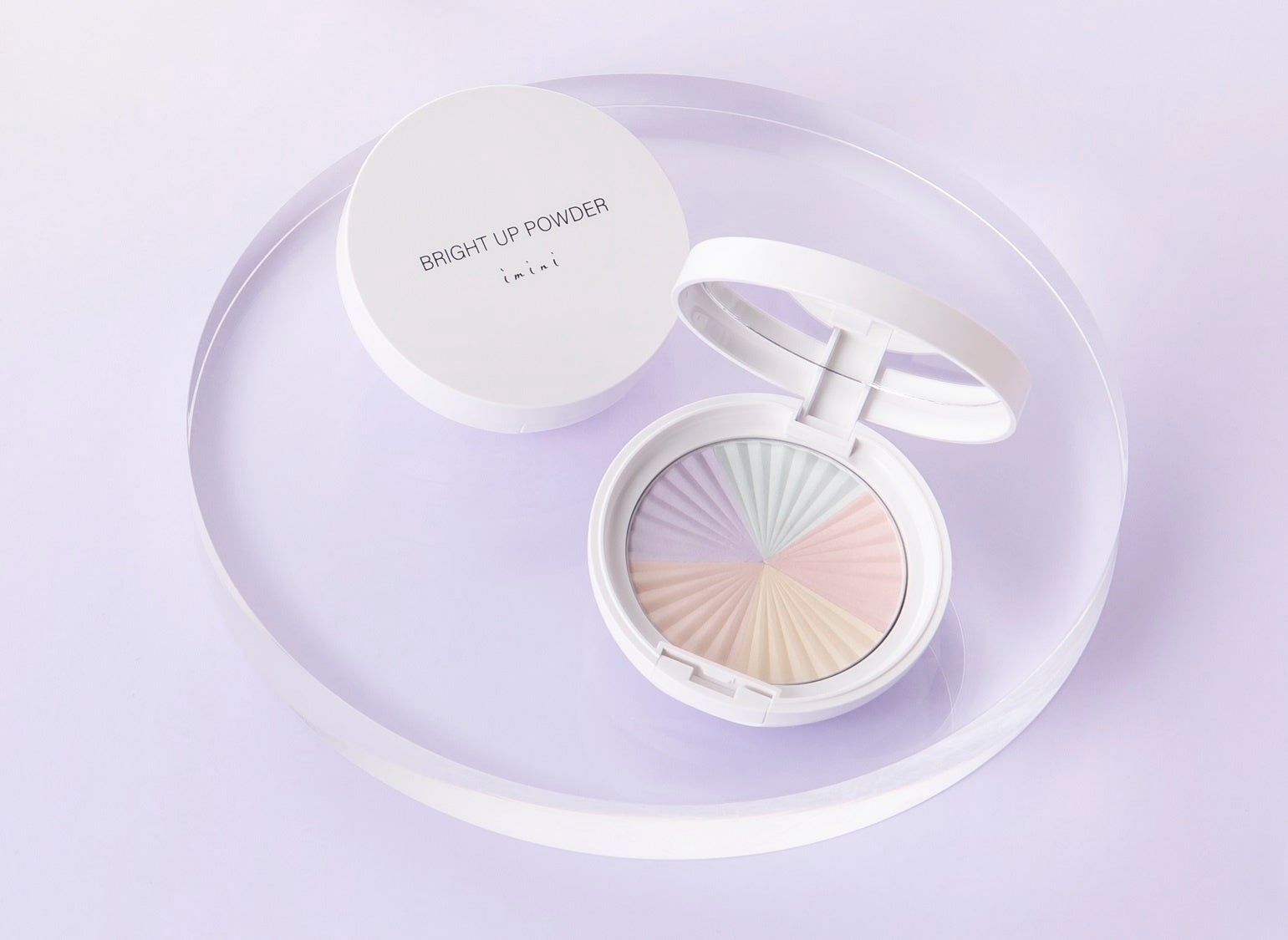 「イミニ ブライトアップパウダー」は、くすみやシミ、血色の悪さ、毛穴、赤ら顔などの年齢肌の悩みをカバーする5色の美肌補整パウダーを採用。ブレンドしてご使用いただくことで、さっとひと塗りで内側から光を放つような澄んだ透明ツヤ肌に仕上げ※1、キレイな素肌のように自然に美しく見せてくれるフェイスパウダーです。