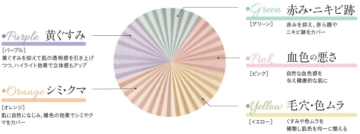 くすみ、シミ、血色の悪さ、毛穴、赤ら顔などの年齢肌の悩みをカバーする5色の美肌補正パウダーを採用。5色のブレンドで、単色では叶わない澄んだ透明感を実現しました※1。