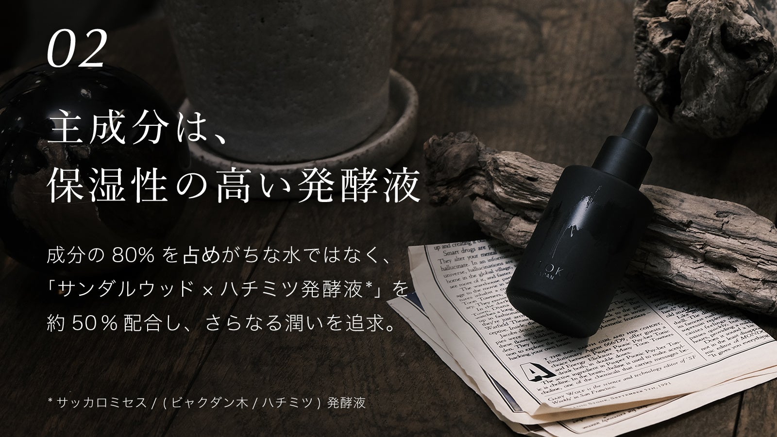 【強みは、ユーザーファーストな成分配合】注目の成分「rh-EGF」を推奨濃度の3倍程度配合/主成分は水ではなく「サンダルウッド×ハチミツ発酵液」/合成界面活性剤・フェノキシ・パラベン・カルボマーフリー
