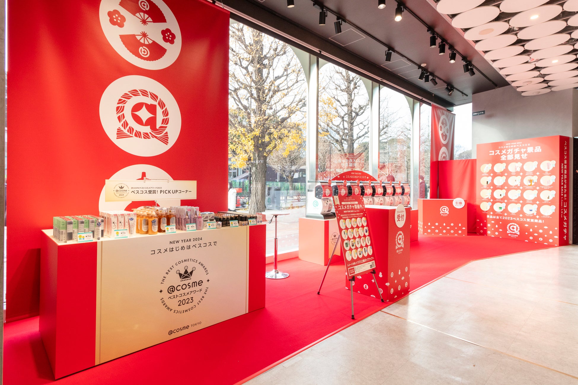 また、@cosme TOKYOの1階のポップアップスペースでは「新年のコスメはじめはベスコスで」をテーマに、@cosmeベストコスメアワードのポップアップイベントを開催。500円(税込)以上お買い物いただくと、10人に1人、ベスコス受賞商品現品が当たる「コスメガチャ」に参加いただけます。