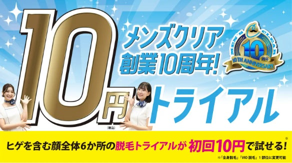 創業10周年記念した「ヒゲ脱毛トライアル 初回10円(税込)」も大好評実施中!