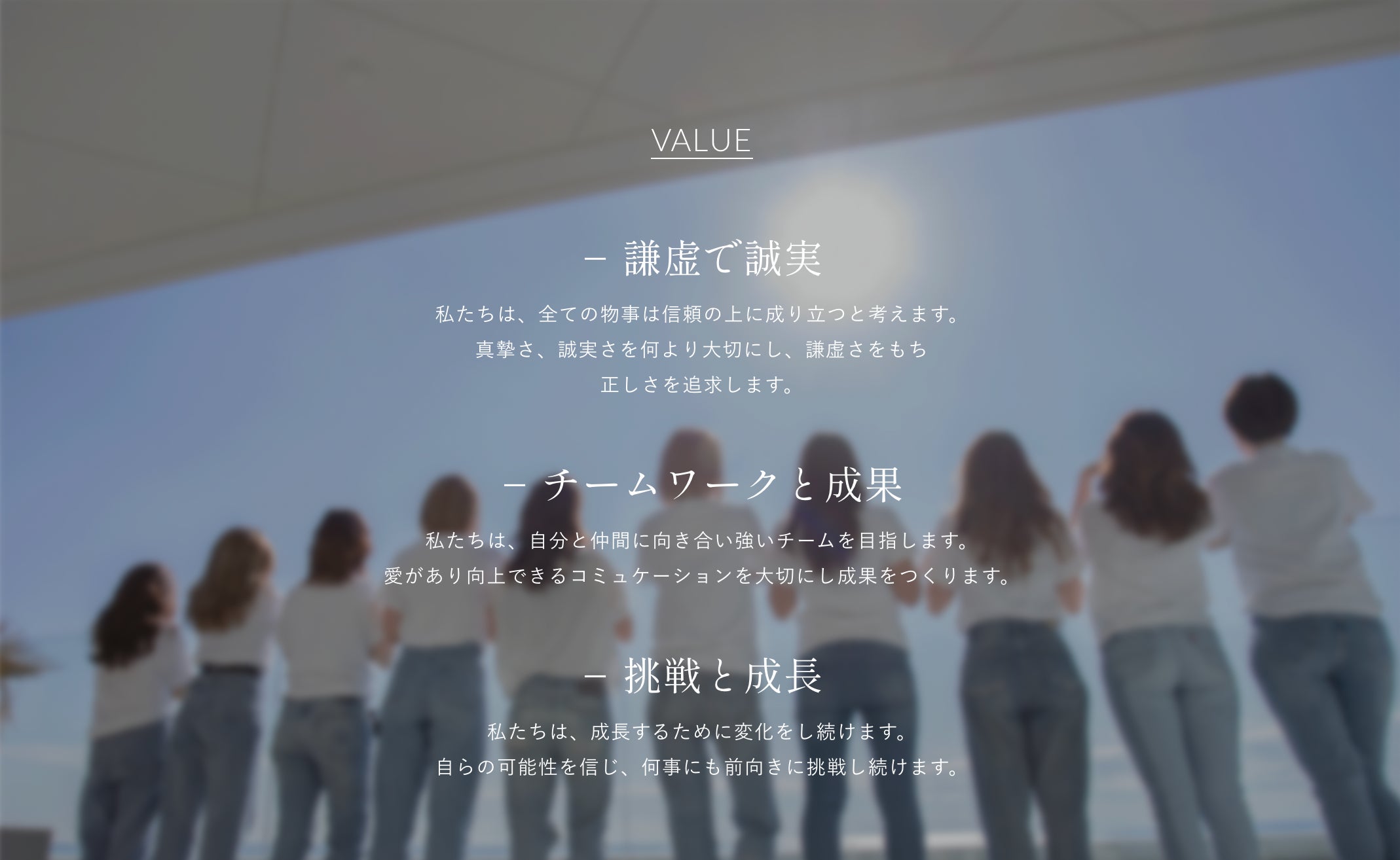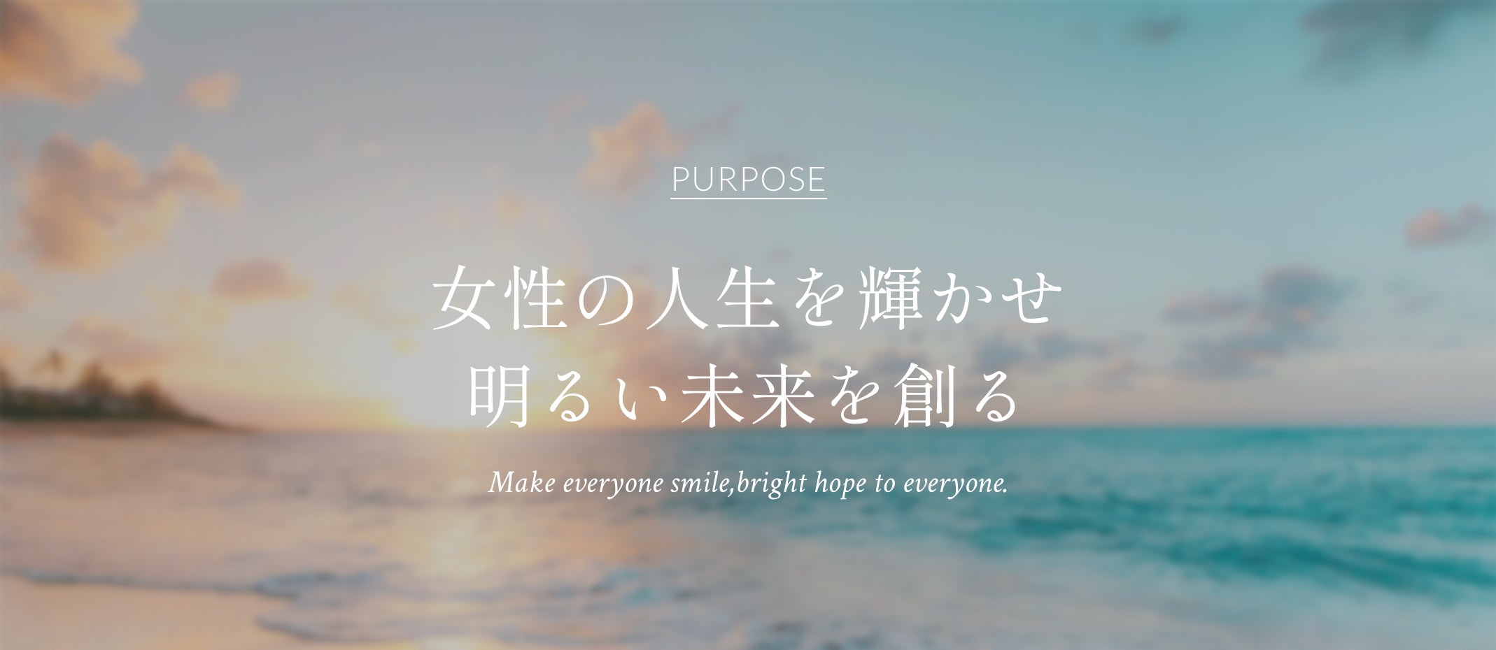 MahaloのPURPOSEは「女性の人生を輝かせ明るい未来を創る」、MISSIONは「人々の人生にときめきとイロドリを届ける」VISIONは「人生にトキメキとイロドリを」そしてVALUEは「Reliance & Sincere」、「Team & Success」、「Growth & Challenge」となっています。