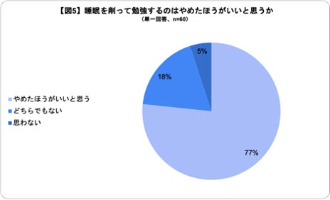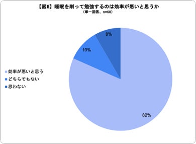 アンケート調査によると、東大生の約80%が、睡眠時間を削って勉強するべきではないと回答しており[図5]、82%が睡眠時間を削った勉強は効率が悪いと回答しました[図6]。