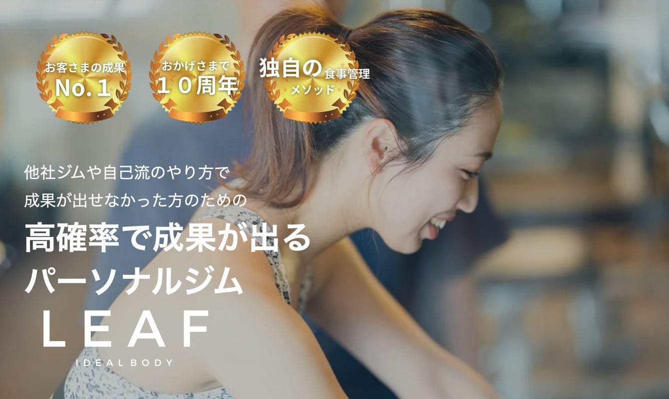 そのほか、様々な経歴を保有する経験豊富な一流トレーナーから完全個室指導を受けられる点や、地域ダイエット成功事例No.1という事実も合わせて、パーソナルトレーニングジムLEAF(リーフ)のサービス満足度の高さがうかがえます。