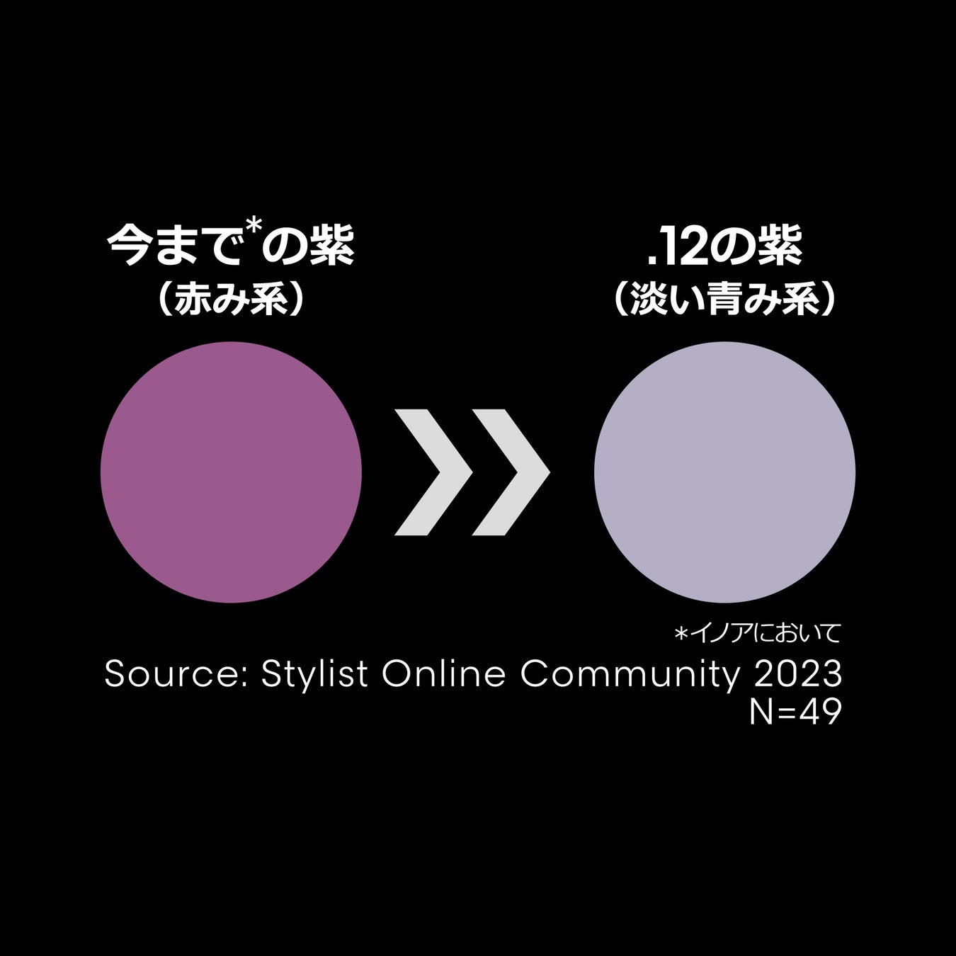 新しい染料*であるα-ナフトールを配合することで、淡い青み系の紫を表現。柔らかなニュアンスへと仕上げます。