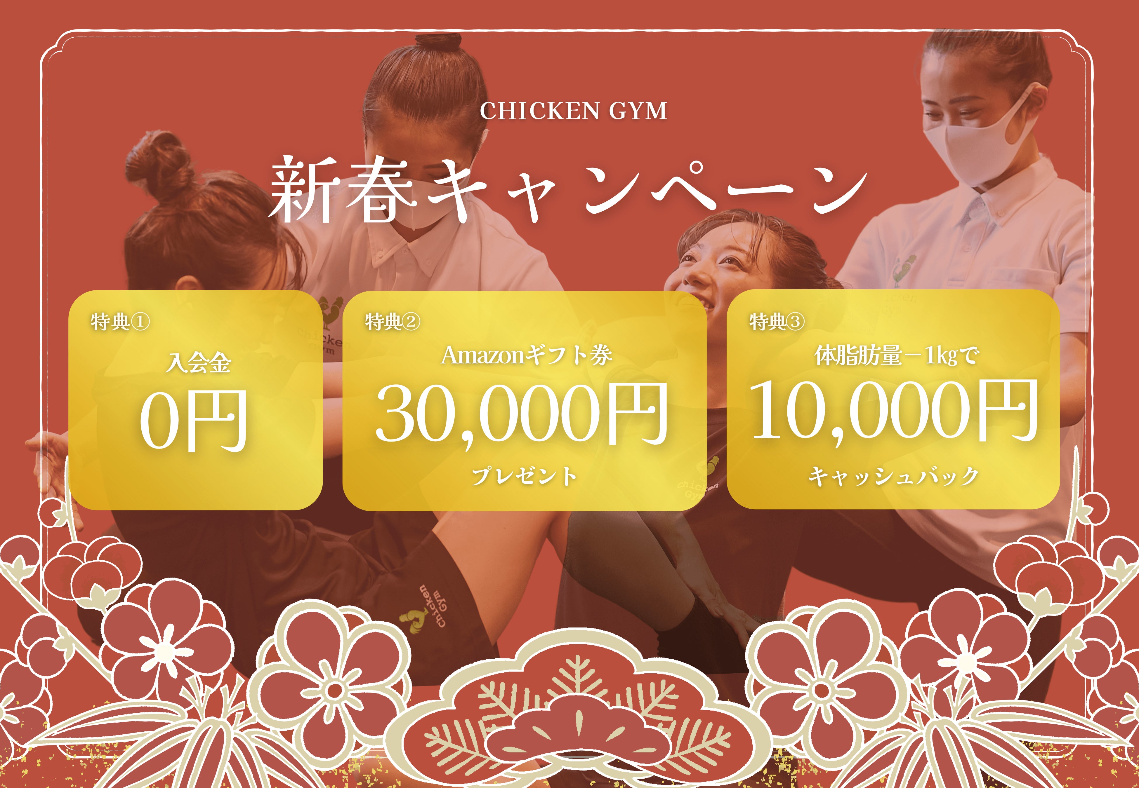 正月太りは パーソナルジム「チキンジム」ですっきり解消!                   1月限定のお得な「新春お年玉キャンペーン」を開始