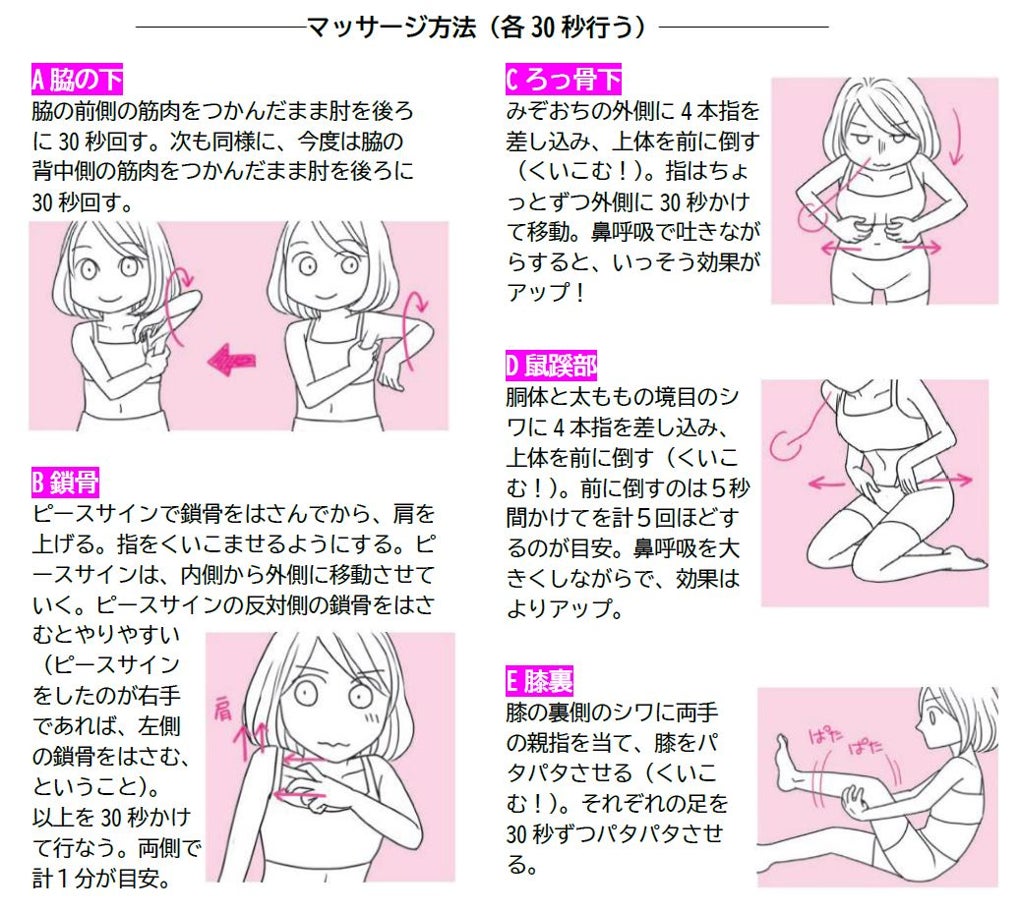 ◎「老廃物のゴミ箱=リンパ節」がある場所を押したりつまんだりしながら、30秒間動かす