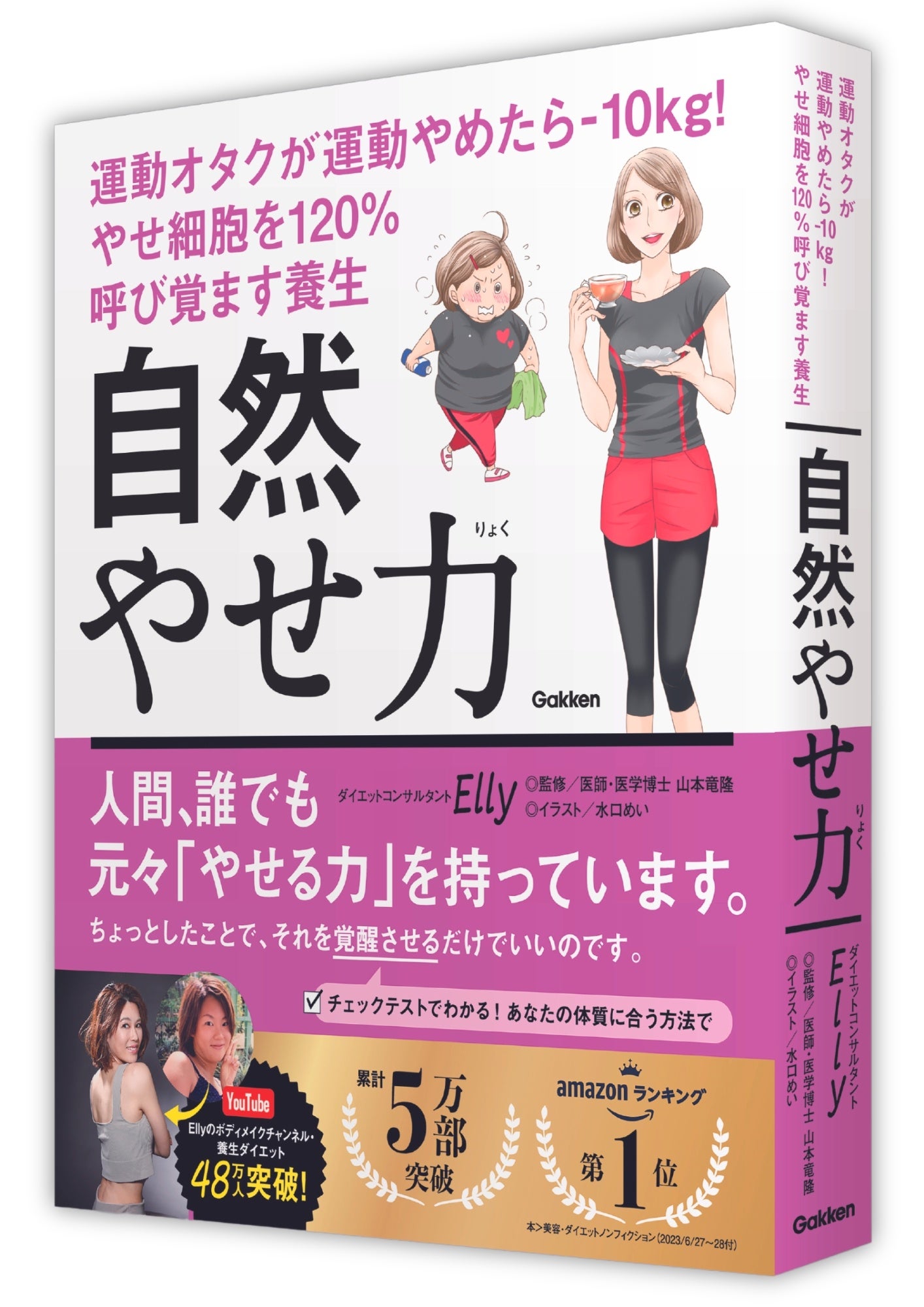 そんなEllyの集大成とも言える『自然やせ力』は、発売前に重版するなど早くから話題でしたが、この度ついに累計発行部数8.5万部を突破しました。本書は医師・医学博士の山本竜隆先生が監修し、東洋医学をベースに「がんばらず」「自然に」やせるための食事法や睡眠、運動など、80以上の方法を紹介しています。読者からは「この本の通りにするだけでするっと痩せた!」「我慢もリバウンドも一切無し。心身ともに健康です」「ダイエットだけではなく、健康になるヒントも満載」と大好評です。