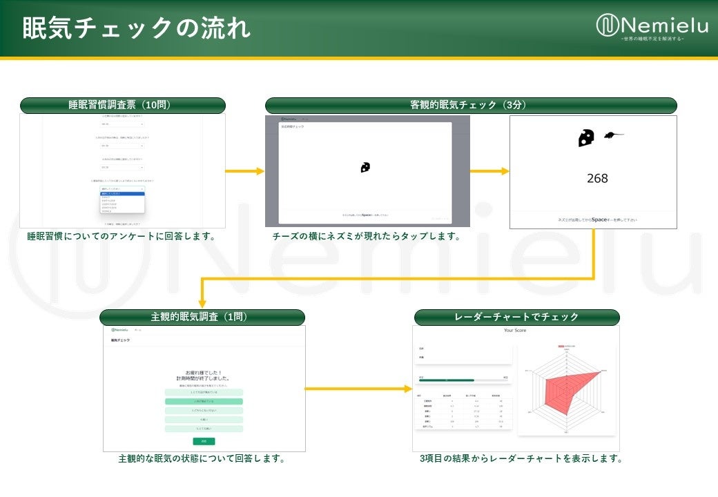 企業の睡眠不足の解消を目的とした企業向け眠気解消WEBサービス「Nemielu」を主軸に睡眠に関する事業を展開します。
